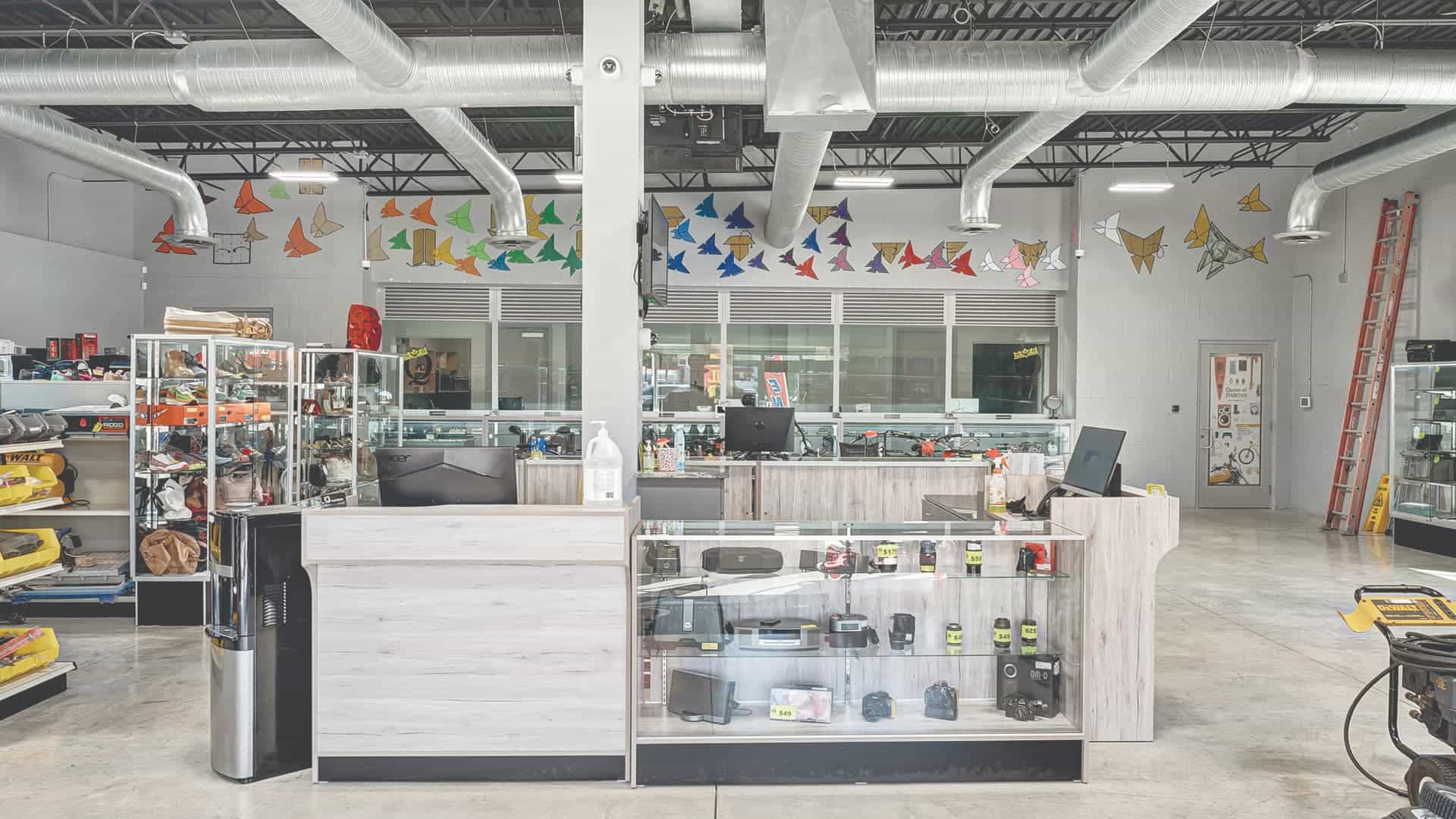 Anndan magazen Hillsborough Ave nou an, kliyan yo ap remake yon miray inik ak papiyon origami ki fèt pa atis lokal Holland King . Travay atistik la ajoute yon sans kreyativite ak transfòmasyon nan espas la, li reflete karaktè inik... Queen of Pawns ak koneksyon nou ak kominote atistik Tampa a.