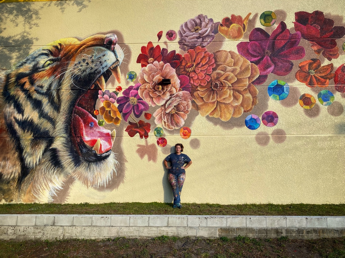 Si ou te pase devan magazen Fowler Ave nou an nan Tampa, Florid, ou pwobableman te wè gwo miray tig la sou bilding lan — yon moso atis lokal Naomi Haverland te kreye. Travay li a, yon tig k ap gwonde ak yon bouke flè ak bijou , senbolize pouvwa ak divèsite. Nan Queen of Pawns , nou renmen sipòte atis lokal yo epi nou kwè atizay li reflete balans n ap chèche a: singularite, bote ak kominote.